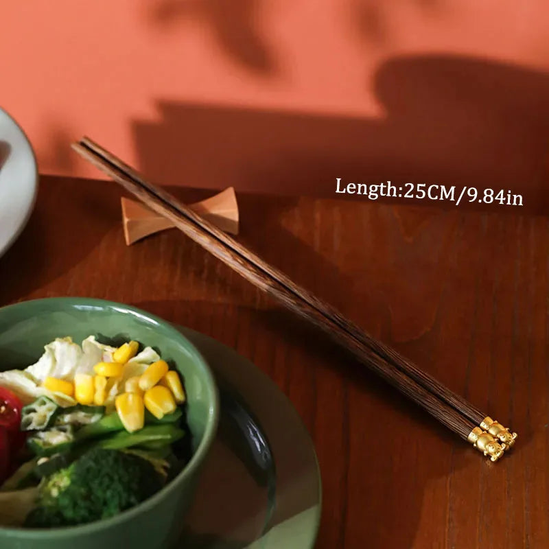 Elegant & Durable Construction: The natural wood grain gives each pair a unique look — no two are alike, with the chopstick topped with a durable alloy head, they resist chipping, swelling, and corrosion while adding a refined visual accent, maintaining a lighter weight than metal while being more durable than bamboo