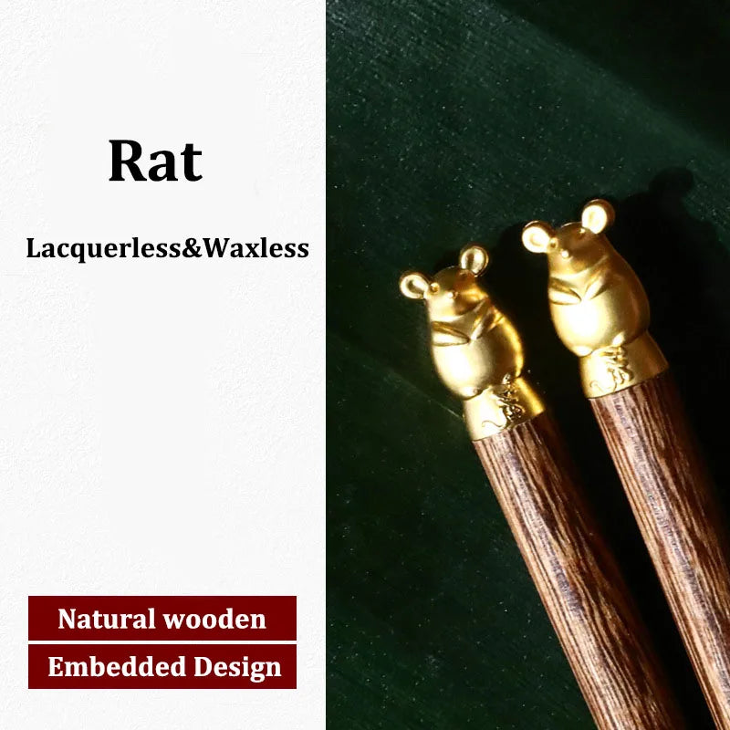Inspired by the Chinese Zodiac (生肖) — a cycle of twelve animals symbolizing personality, destiny, and harmony — the Shēngxiào Chopsticks embody a celebration of culture and craftsmanship. This two-pair set is handcrafted from natural Wenge wood and adorned with elegant alloy tops, bringing symbolism and sustainability to your table.