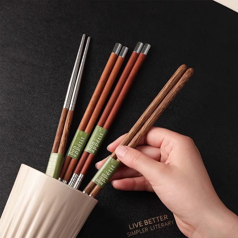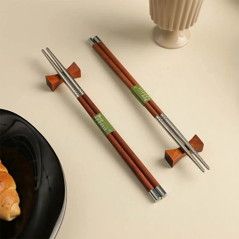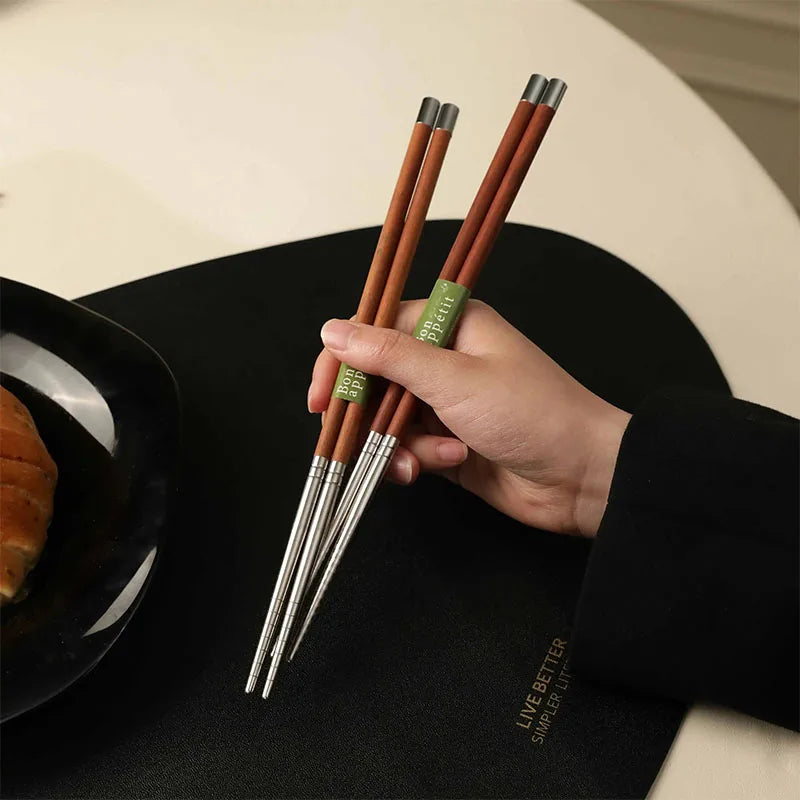 Elevate your dining experience with Thiên Nhiên Chopsticks. Rooted in the Vietnamese phrase “Thiên Nhiên,” meaning nature, this luxurious chopstick set is inspired by the balance and beauty of the natural world. With each pair, we bring together the grounded warmth of wood and the resilience of steel — a harmony of elements designed to elevate everyday dining into a serene ritual.