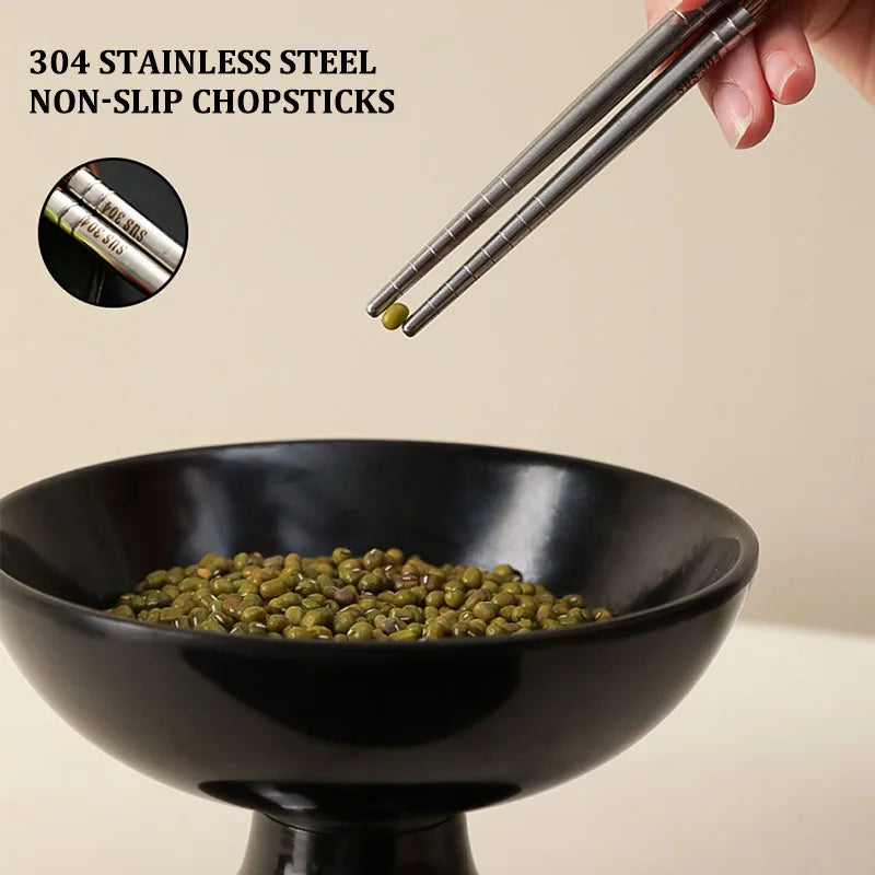 Non-Slip & Ergonomic: Anti-slip threading boosts grip on rice, noodles, and small bites, thoughtful weight-balanced design reduces hand fatigue by 40%, compared to full-metal chopsticks